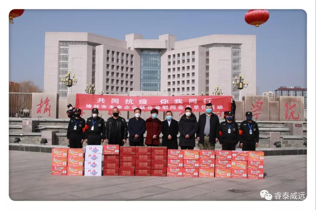 2月19日,在榆林市工商聯(lián)副主席張修前率領(lǐng)榆林市未來(lái)企業(yè)聯(lián)合會(huì)黨支部書(shū)記、愛(ài)心公益主任徐遼飛,愛(ài)心公益中心副主任秦海軍,副監(jiān)事曹強(qiáng)等領(lǐng)導(dǎo),為會(huì)員單位威遠(yuǎn)公司所派駐職業(yè)技術(shù)學(xué)院的保安員送來(lái)了方便面、火腿腸、礦泉水等價(jià)值5000余元的暖心慰問(wèn)品,威遠(yuǎn)安保集團(tuán)副總經(jīng)理陳銘、人防事業(yè)部經(jīng)理劉元利及相關(guān)保安員參加了此次活動(dòng)。