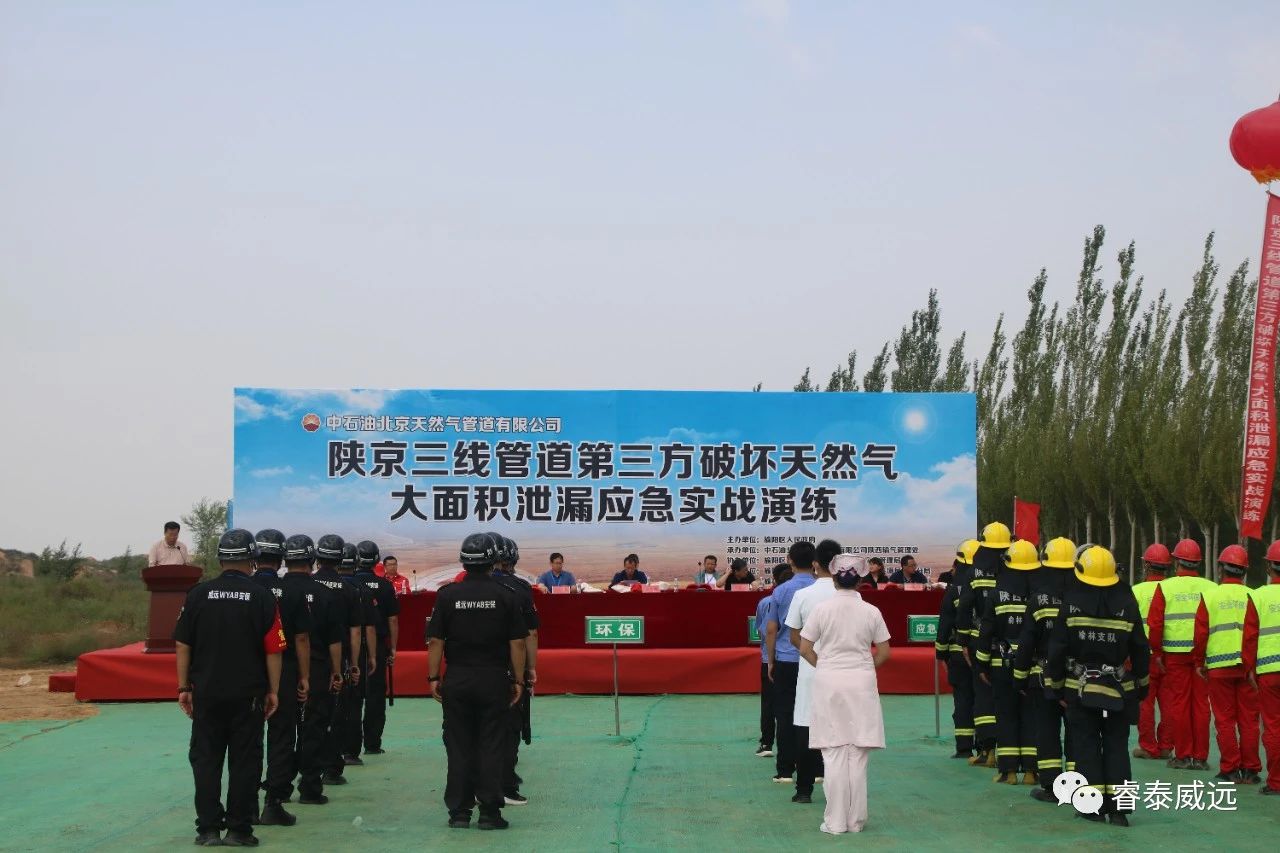 2020年8月28日上午,中石油北京天然氣管道有限公司陜西輸氣管理處開展陜京三線管道第三方破壞天然氣大面積泄漏應(yīng)急實(shí)戰(zhàn)演練。演練現(xiàn)場,由榆陽區(qū)政府專職黨組成員白志強(qiáng)致辭,陜西輸氣管理處常務(wù)副處長張東寧宣布演練開始。