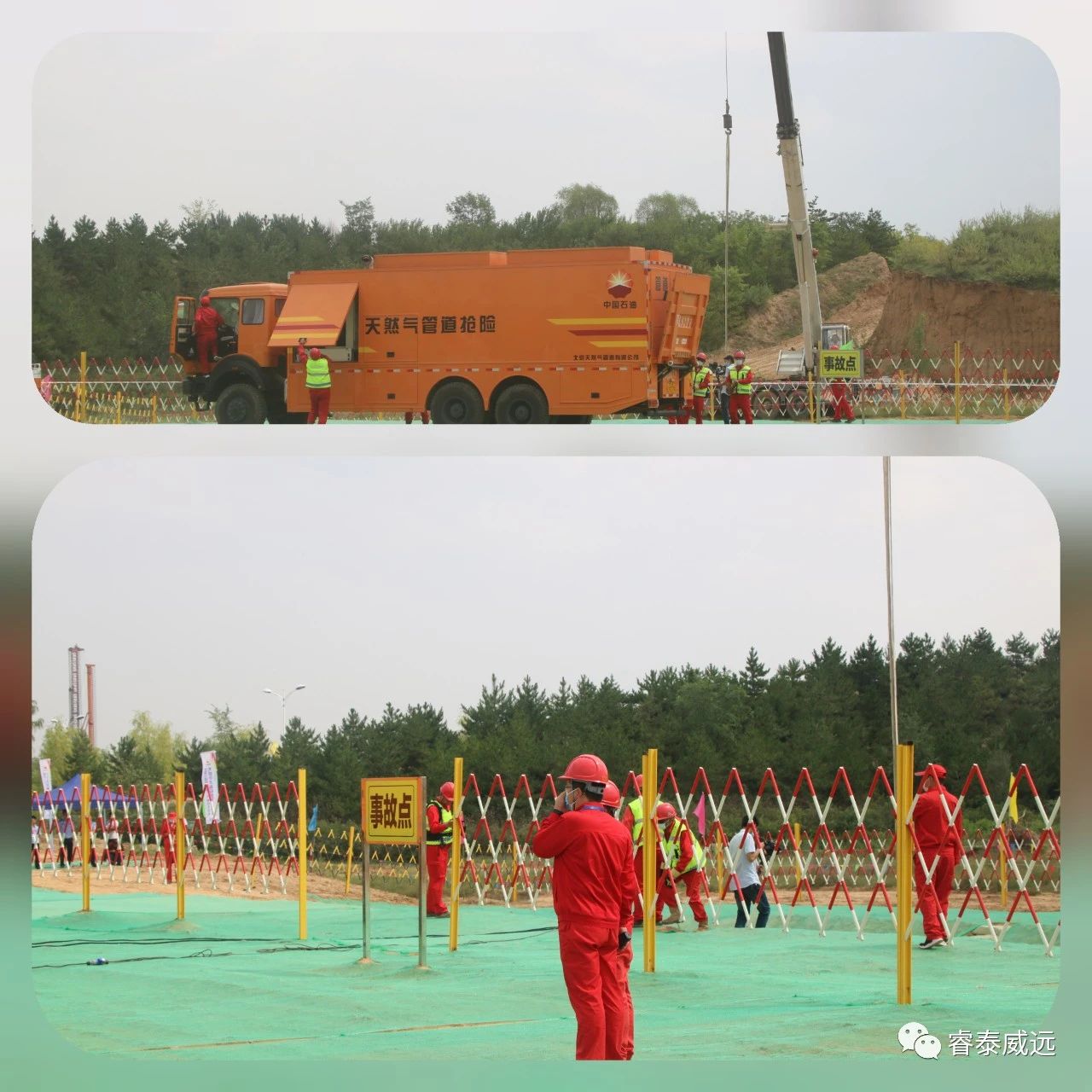 演練模擬陜京三線管道在李寧小鎮(zhèn)S3a0140樁處由于第三方違章施工,一臺挖掘機(jī)施工造成管道破裂,發(fā)生大面積天然氣泄漏突發(fā)事件。