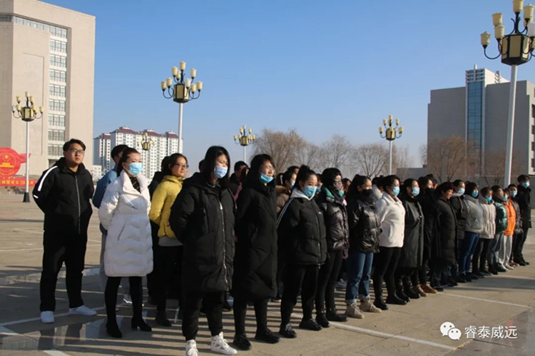 全體學(xué)員在寒冬下進行隊列訓(xùn)練