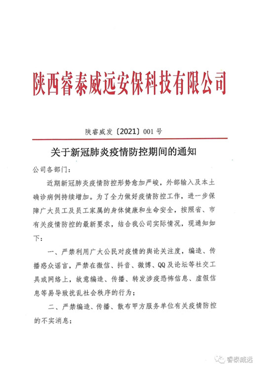 近期新冠肺炎疫情防控形勢愈加嚴(yán)峻,外部輸入及本土確診病例持續(xù)增加。為了全力做好疫情防控工作,威遠(yuǎn)安保集團(tuán)積極預(yù)防新型肺炎疫情進(jìn)行再行動再部署,堅(jiān)決做到疫情防控舉措實(shí)施常態(tài)化。