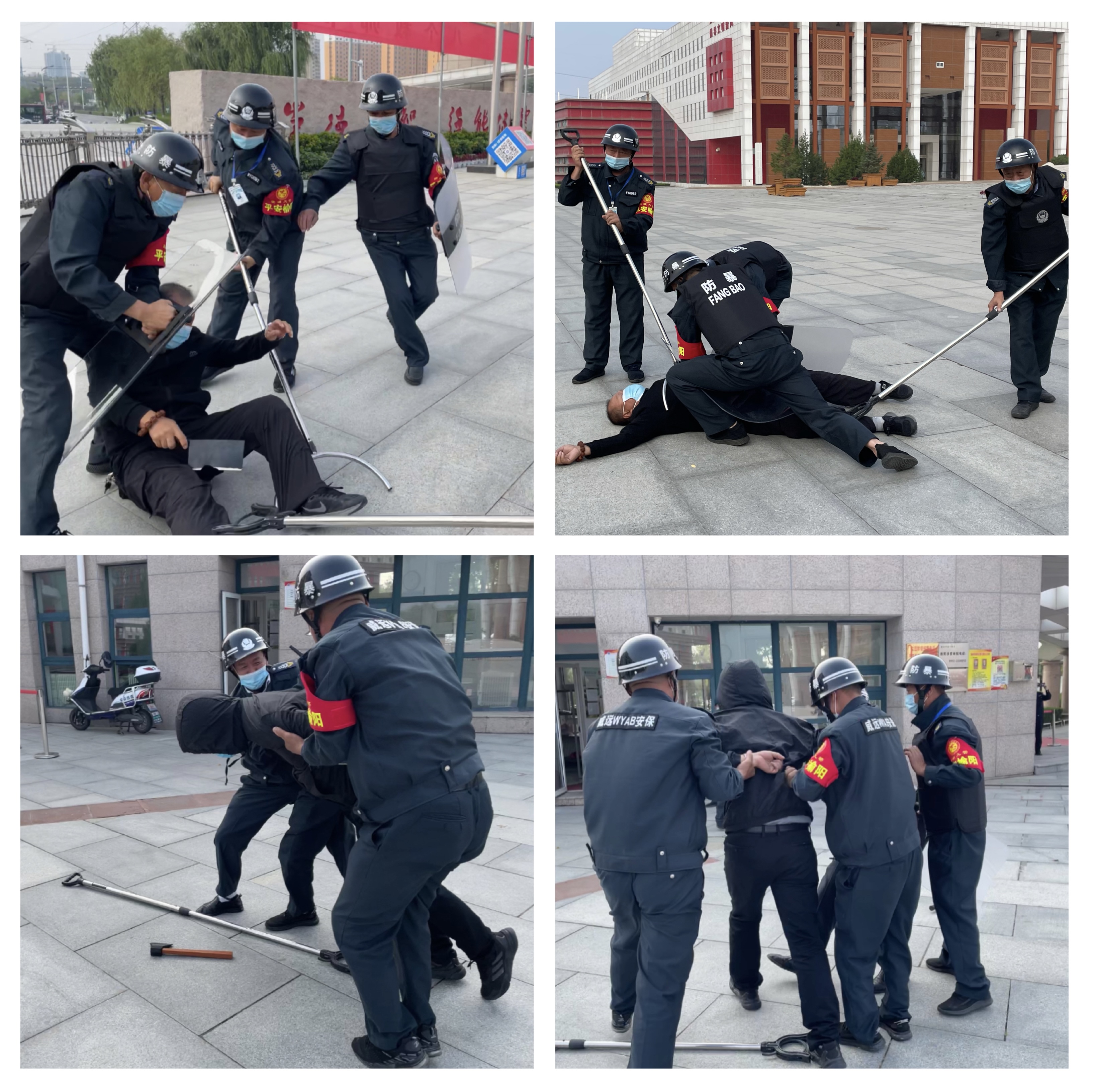 為進一步加強校園安全保衛(wèi)工作,提升校園安全防范能力,全面提高保安員面對突發(fā)事件的快速反應、突擊攻堅、協(xié)同聯(lián)動能力,9月14日上午,我集團駐榆林市一中分隊在榆林市一中及駝峰路派出所共同指導下,開展了此次反恐防暴應急演練,校法制副校長賀建君、保衛(wèi)科科長胡占瑞、駝峰路派出所所長劉錦峰及數名民警參加并指導了應急演練。