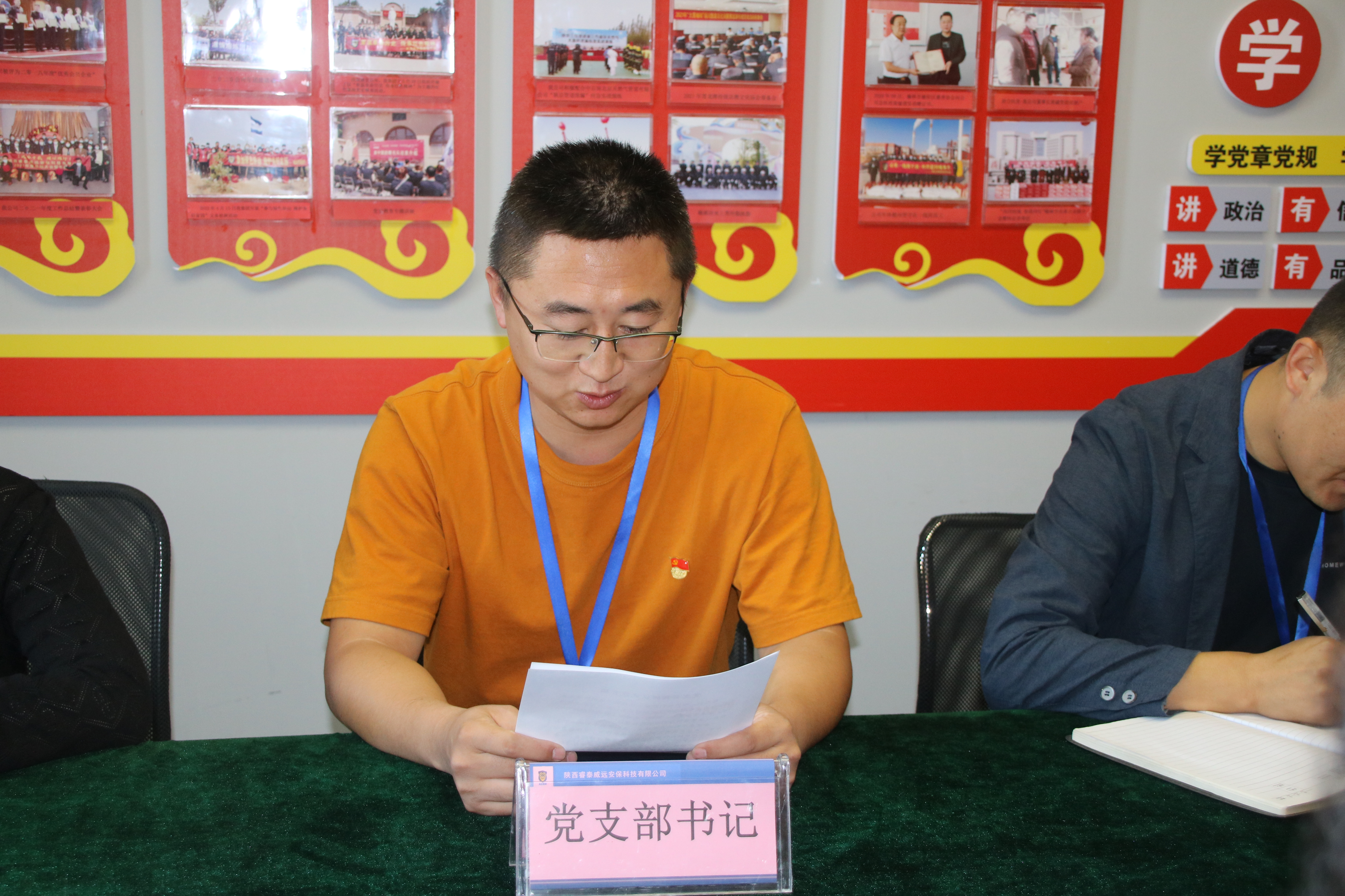 會議首先由黨支部書記邵勇宣讀《關于成立中共陜西睿泰威遠安??萍加邢薰军h支部的批復》。