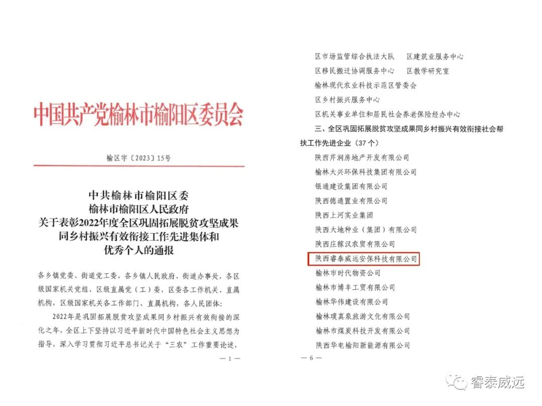 公司新聞3月1日,中共榆林市榆陽區(qū)委、榆林市榆陽區(qū)人民政府組織召開區(qū)委農(nóng)村工作會議,此次會議對2022年度全區(qū)鞏固拓展脫貧攻堅成果進行全盤總結,同時明確了今年的重點工作方向,強調要用心、用情、用智做好“三農(nóng)”工作,真抓實干、接續(xù)奮斗,全力推進農(nóng)業(yè)強市建設,譜寫榆林高質量發(fā)展新篇章。并對2022年度鄉(xiāng)村振興有效銜接工作先進集體和優(yōu)秀個人進行了表彰,我集團榮獲2022年度全區(qū)鞏固拓展脫貧攻堅成果同鄉(xiāng)村振興有效銜接工作“先進企業(yè)”殊榮,集團董事長黃崴先生受邀參加此次會議并接受表彰。