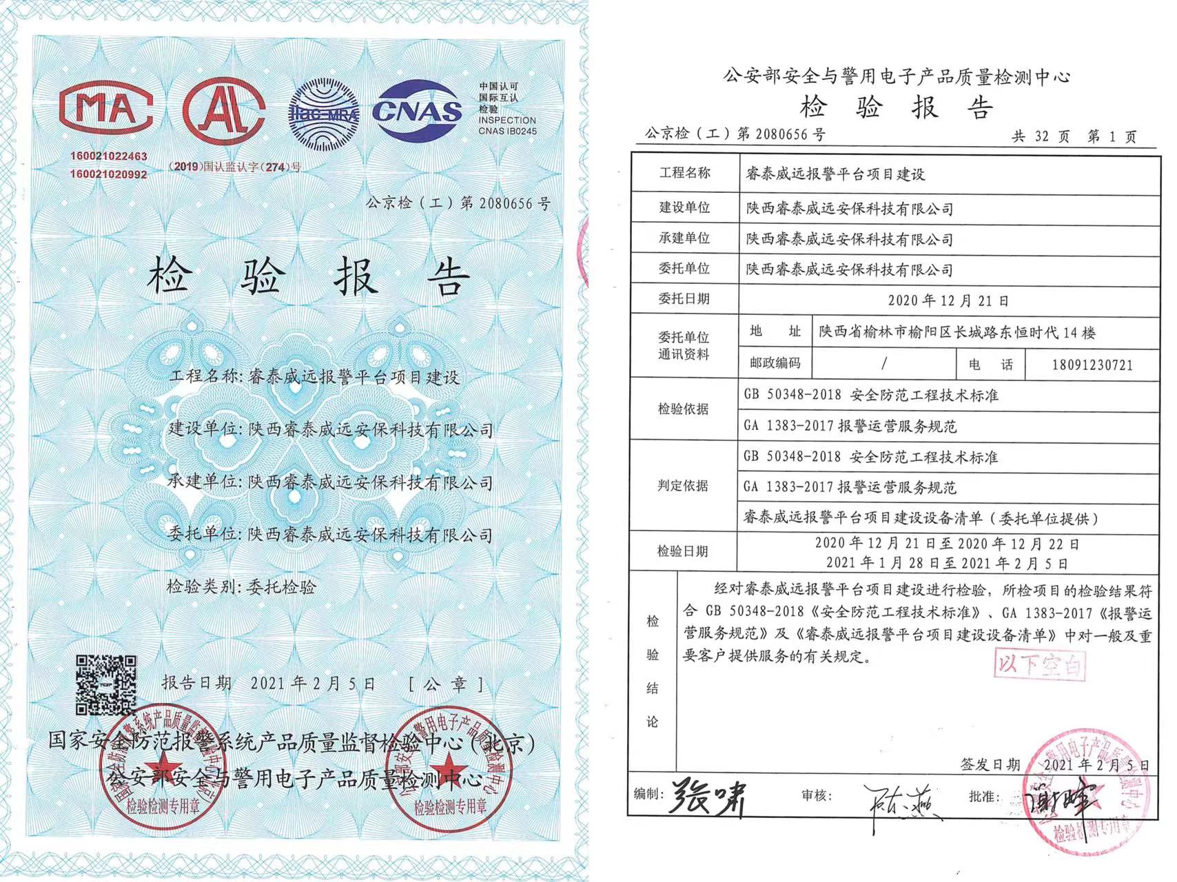 根據(jù)公安部出臺(tái)的最新《報(bào)警運(yùn)營(yíng)服務(wù)規(guī)范》規(guī)定,我集團(tuán)于2021年2月5日通過(guò)國(guó)家安全防范報(bào)警系統(tǒng)產(chǎn)品質(zhì)量監(jiān)督檢驗(yàn)中心(北京)、公安部安全與警用電子產(chǎn)品質(zhì)量檢測(cè)中心檢驗(yàn),符合《報(bào)警運(yùn)營(yíng)服務(wù)規(guī)范(GA1383-2017)》,具備從事報(bào)警運(yùn)營(yíng)服務(wù)的資格。