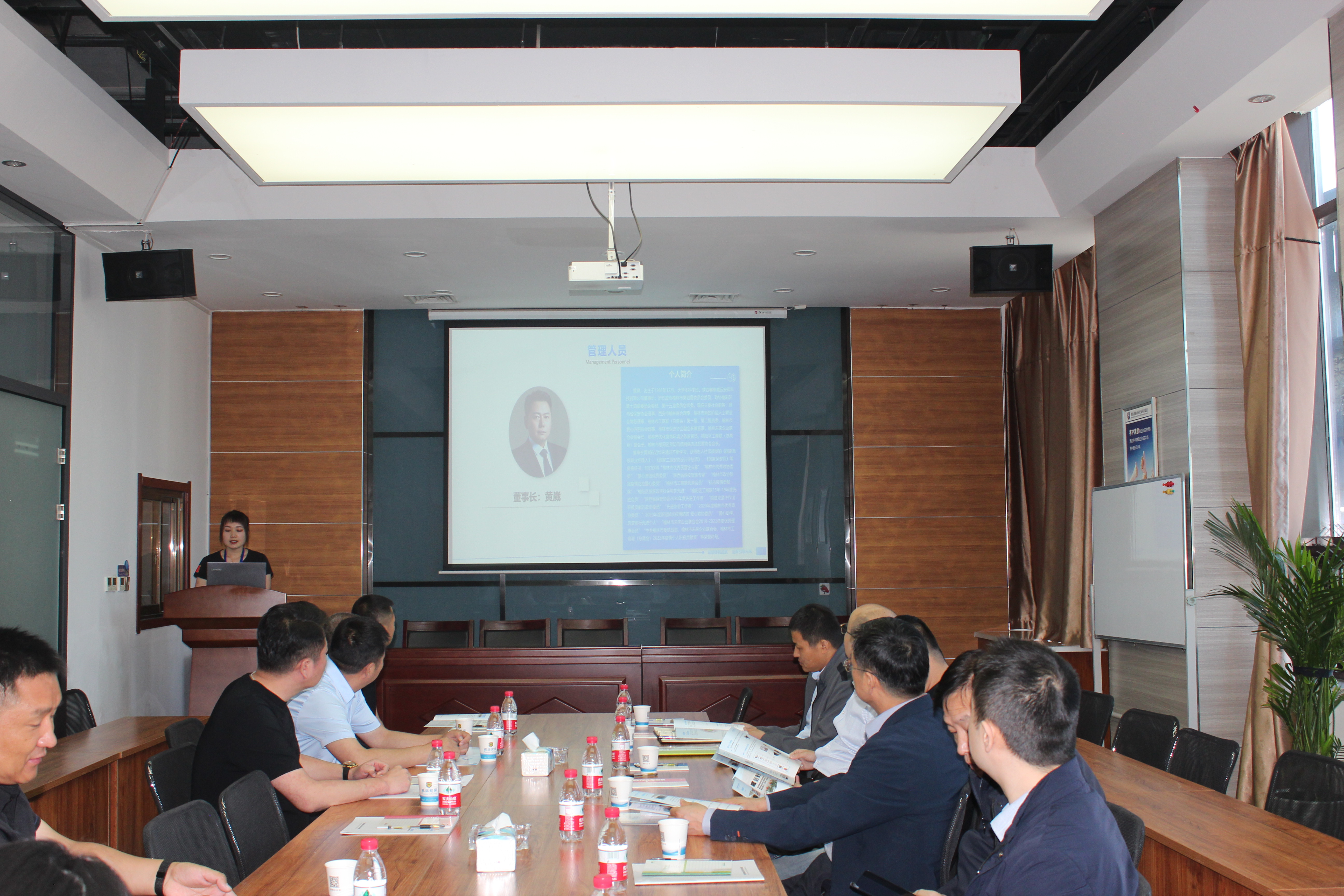 調(diào)研組通過(guò)實(shí)地查看、參觀展廳、聽(tīng)取介紹等方式,了解掌握我集團(tuán)發(fā)展現(xiàn)狀,最后在會(huì)議室由行政事業(yè)部經(jīng)理陳妮妮為調(diào)研組講解企業(yè)宣傳片。