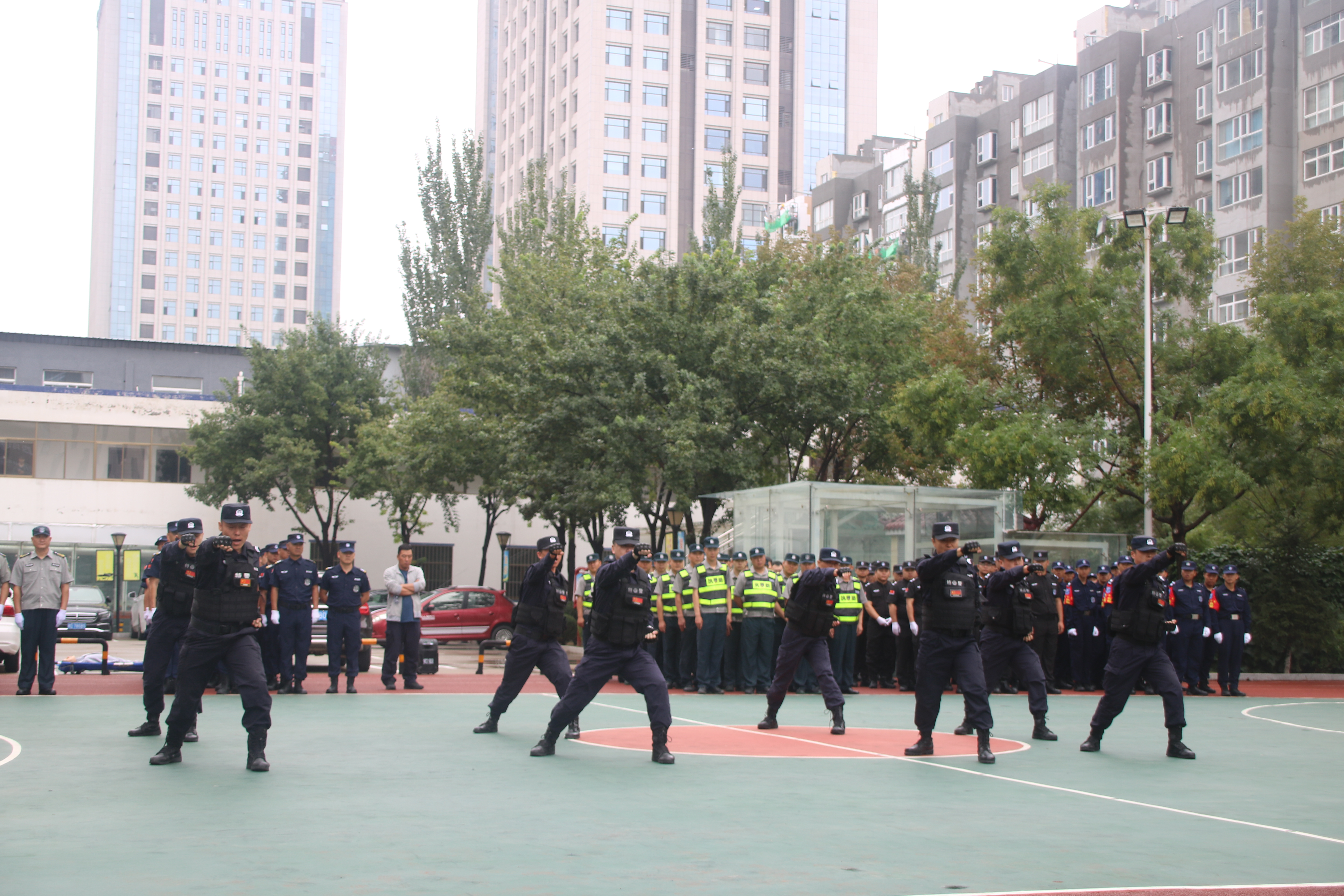 比武競賽由陜西睿泰威遠(yuǎn)安??萍加邢薰?、榆林市保安服務(wù)公司等六家保安企業(yè)分別進(jìn)行,內(nèi)容設(shè)置有保安員隊列動作、突發(fā)事件應(yīng)急處置、情景演練等科目對保安員應(yīng)對突發(fā)事件處置、防暴器械使用以及日常勤務(wù)、儀容儀表等進(jìn)行了檢驗考核。我公司匯報兩個科目。