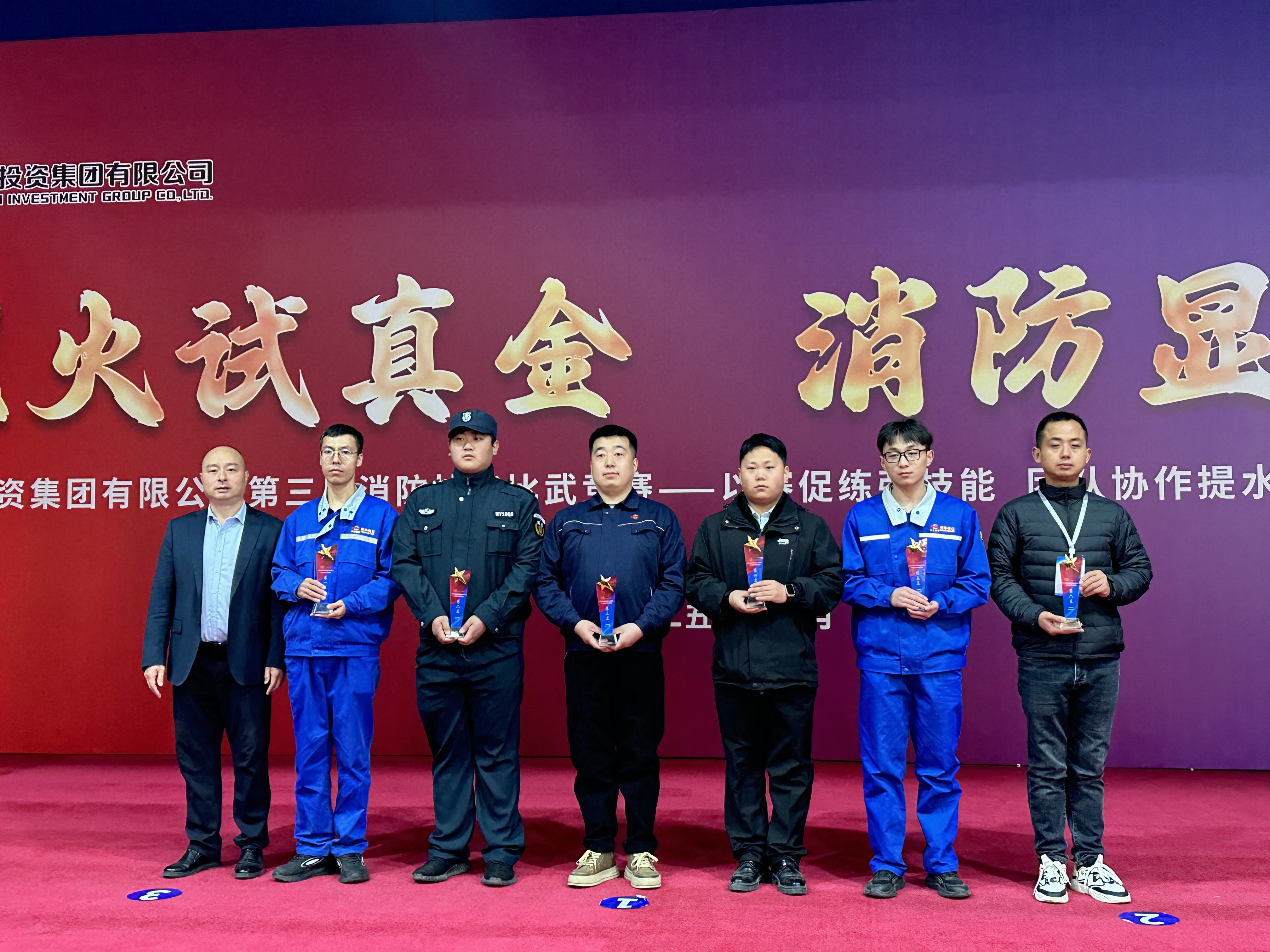 在激烈角逐中,威遠(yuǎn)安保公司駐秦達(dá)物業(yè)神木氯堿項(xiàng)目邢寧輝(左三)表現(xiàn)突出,榮獲個(gè)人項(xiàng)目第二名;